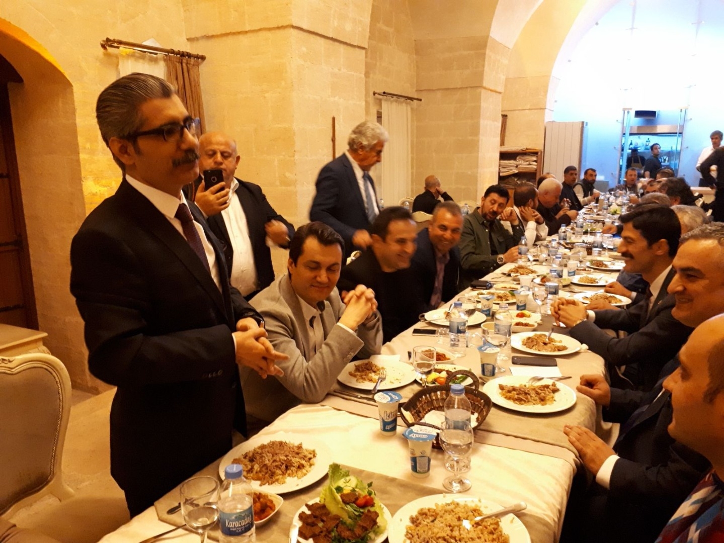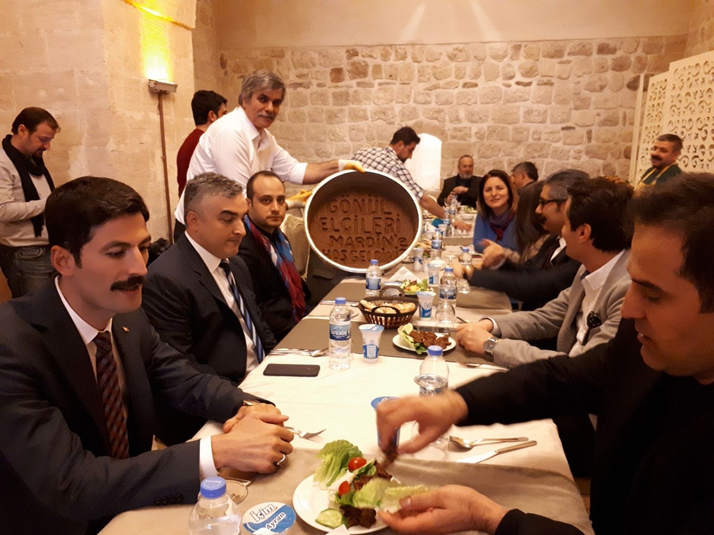Mardin Vali yardımcıları ve Derik Kaymakamının da katıldığı Eski Mardin'de Tarihi Konakta verilen Akşam yemeği sonrası Terastan Mardin'in o eşsiz doyumsuz güzelliğine çaylarını yudumlarken şahit oldular. Akşam Yemeğine Mardin Vali yardımcıları Ayhan Yazgan ,Bahattin Çelik, Artuklu kaymakamı Şakır Öner Öztürk ,Derik kaymakamı Hakan Kafkas ,Kızıltepe Muhtarlar Derneği ve Güneydoğu Muhtarlar Federasyonu Başkanı Hatip Şeran,Mardin Trabzonsporlular Derneği Başkanı İbrahim Aydın,Mardin Gazeteciler Cemiyeti Başkanı,Kızıltepe Gazeteciler Cemiyeti Başkanı ,