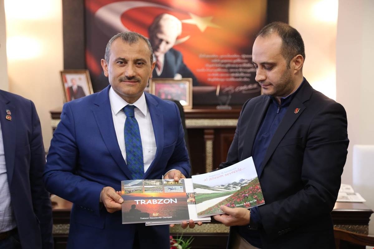 Konuşmaların ardından Trabzon Gazeteciler Cemiyeti Başkan Vekili Osman Şişko Vali Tuncay Sonel’e ziyaretin anısına bir plaket ve Trabzon Gazeteciler Cemiyeti’nin basılı eserlerinden takdim ederken, koordinatör Ahmet Külekçi’de Trabzonspor forması hediye etti.