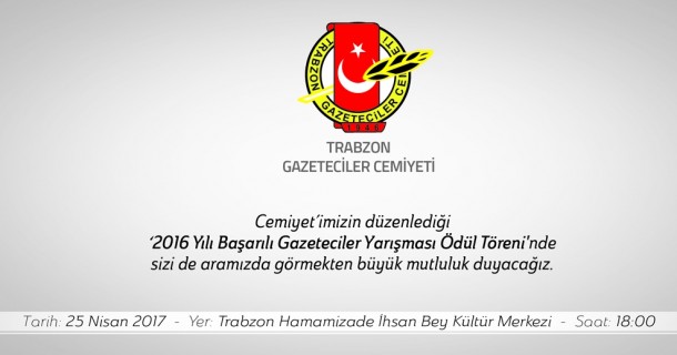 Cemiyet’imizin düzenlediği ‘2016 Yılı Başarılı Gazeteciler Yarışması Ödül Töreni’nde sizleride aramızda görmekten büyük mutluluk duyacağız.